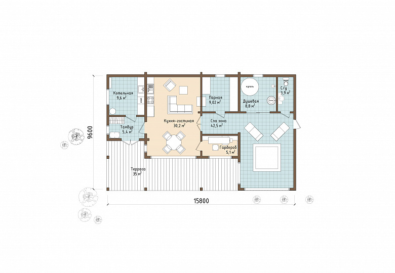 - Террасы: 1